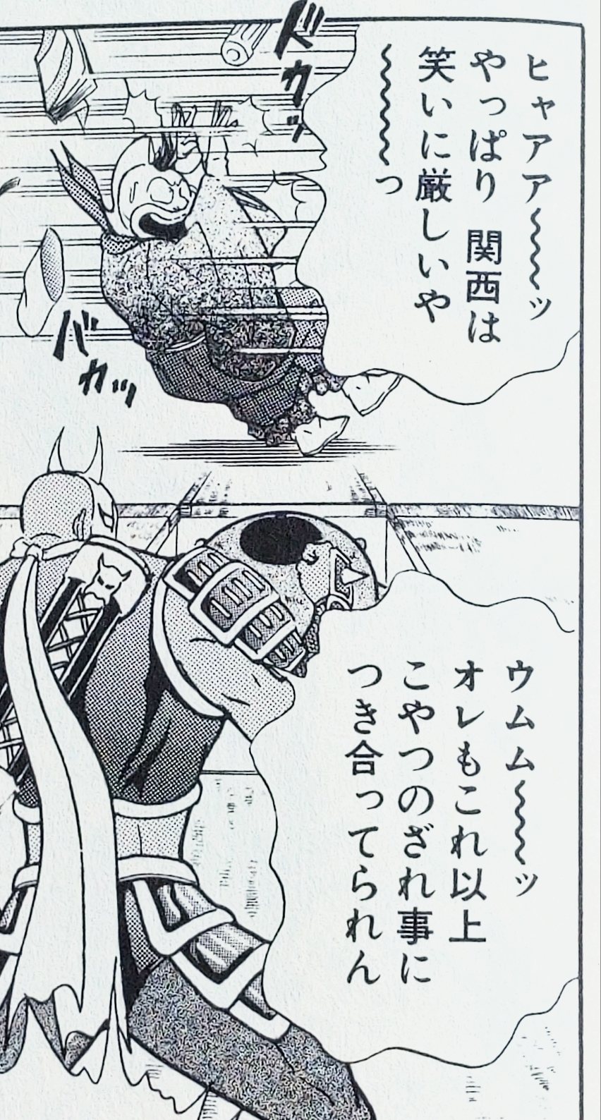 悪魔騎士時代のニンジャも、アニメじゃスグルのボケに対して顔を巨大化させてツッコミ入れたりしてました。ギャグ漫画時代の名残で、悪役も結構ノリが良かったりします。