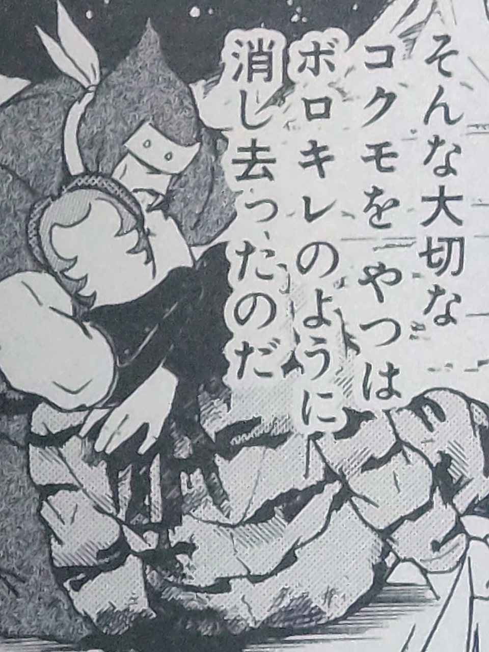 万太郎はニンジャの形見の襟巻きで、ハンゾウの火傷を隠してあげます。とても良いシーン😭