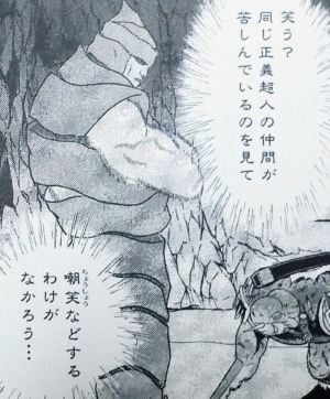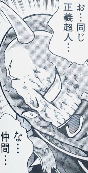 生前はハンゾウのことを「この鬼畜」「殺しておけば良かった」と言うほど憎んでいたニンジャですが、もうそんな素振りは一切見せません。それどころか「同じ正義超人の仲間」として認め、激励します。