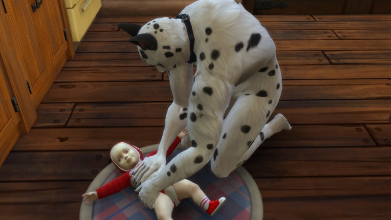 「バウ〜、さすがに疲れてきたぜ……コイツ赤ん坊のくせに105㎏もあるんだよな……💧」