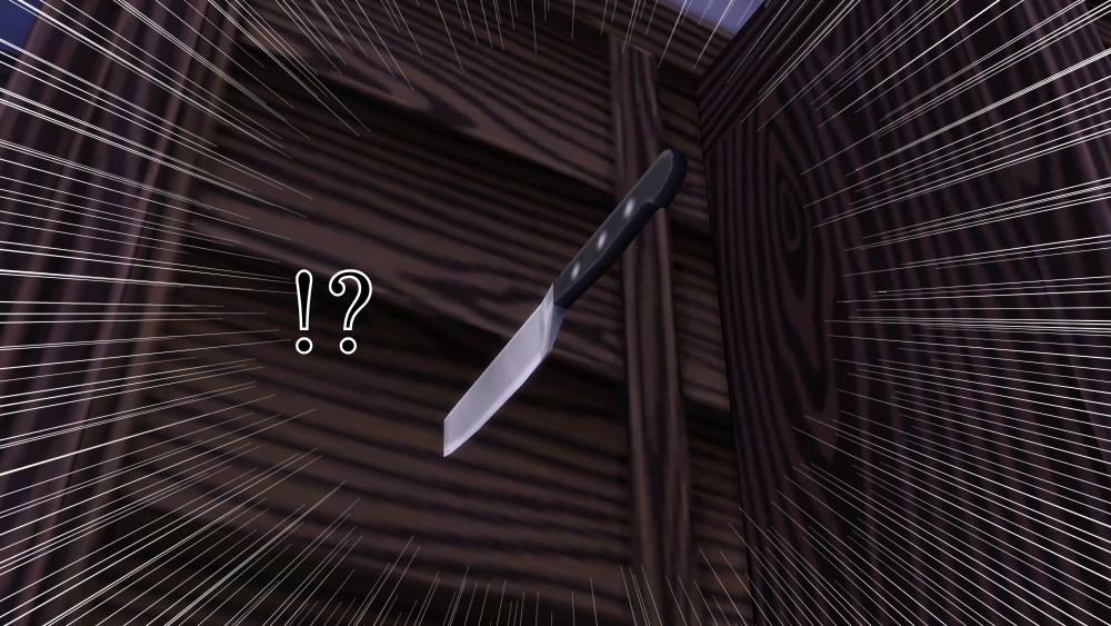 どこからともなくナイフが飛んできて、壁に突き刺さった。