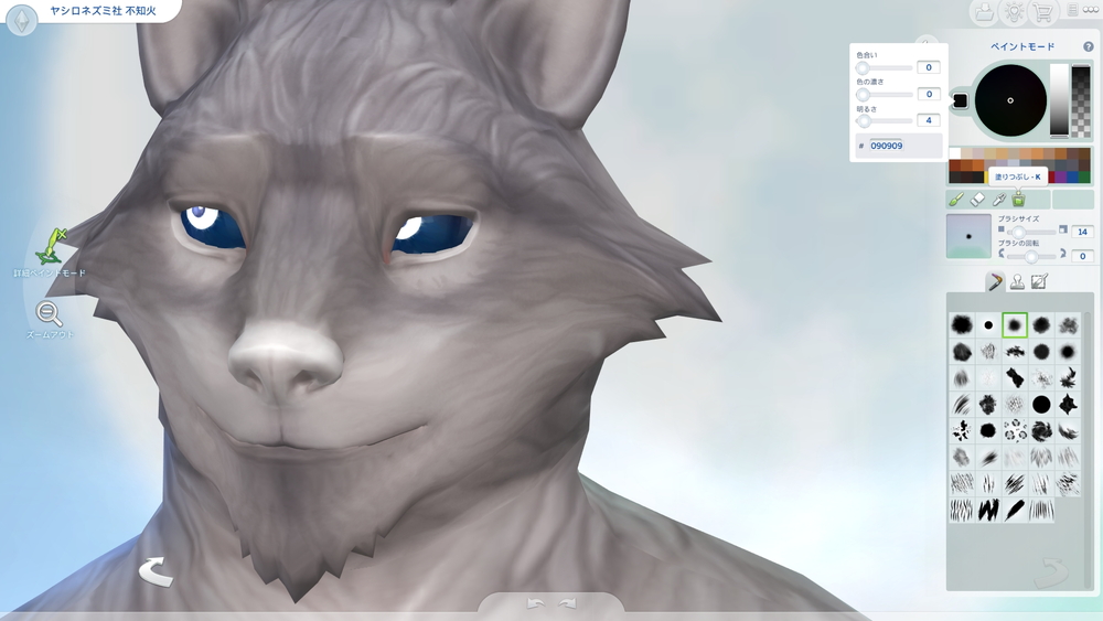 ズームして「詳細ペイントモード」で、黒(好きな色)を選んで塗りつぶし。