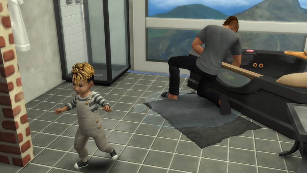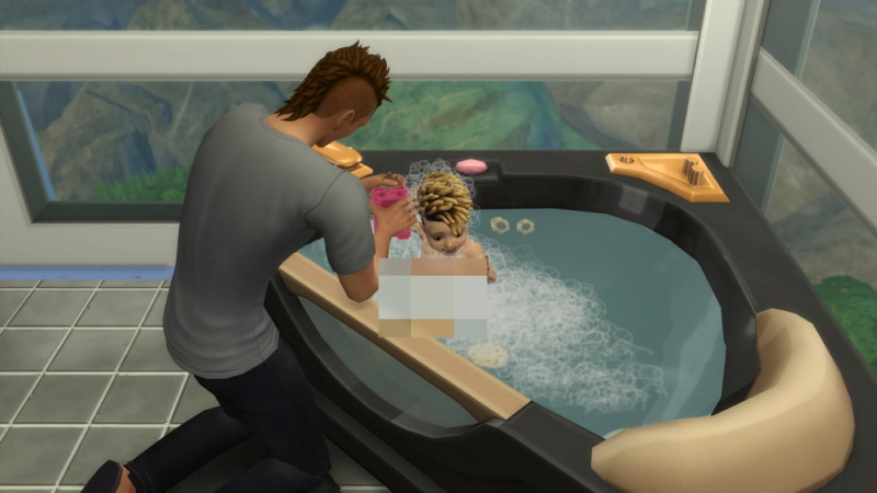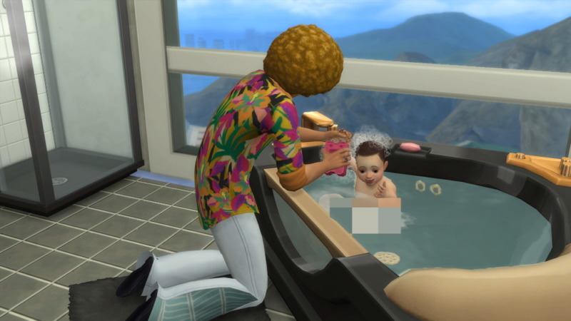 アフロ「よしよし、楽しいお風呂の時間だよ~ん」